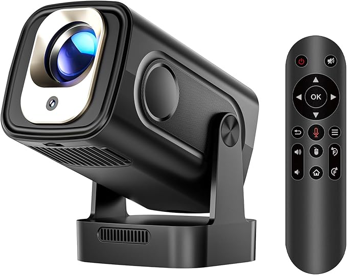 - Android 14 Mini Projector 4K & 8K Support 1080P Projector Auto Focus, Car Keystone Correction Smart Projector Home Cinema with WiFi 6 BT5.4, 180° Rotation HY310