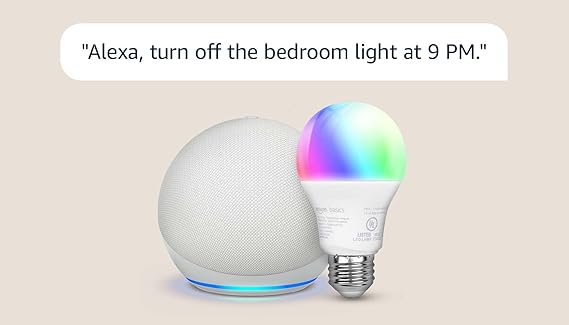 - VOICE-CONTROLLED LIGHTING MADE SIMPLE: Echo Dot + Amazon Basics Smart Color Bulb bundle enables instant voice commands to control brightness, colors, and power – just screw in bulb, say “Alexa, discover devices” and experience hub-free smart lighting in under 2 minutes.