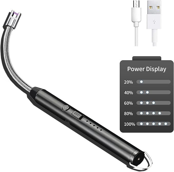 Newaner Stabfeuerzeug,Lichtbogen Feuerzeug Elektrisch mit längerer Hals,Elektronisches Feuerzeug USB Aufladbar Winddichte Flammenlose für Küche Herd Camping Feuerwerk Kamin Kerzen Anzünden Schwarz