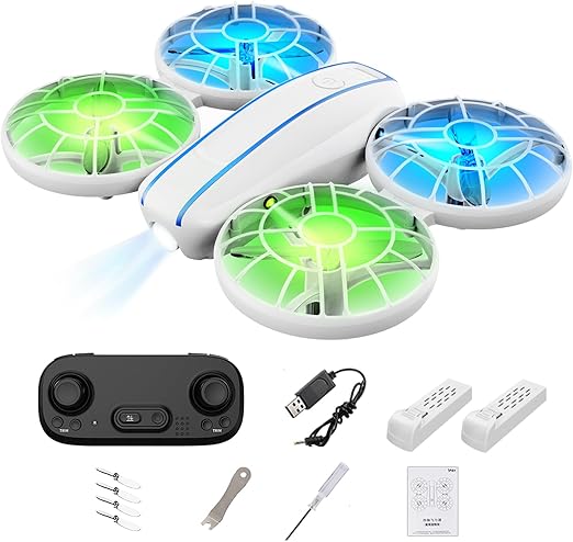 - Surprise & Vibrant LED Drone for Kids — This mini drone features super bright blue and green LED lights integrated into its propeller frames, creating an eye-catching effect during flight. With 4 different light modes to choose from, kids can enjoy a colorful and mesmerizing flying experience. Whether soaring in daylight or lighting up the night sky, the LED effects captivate and delight, making it an unforgettable toy for children
