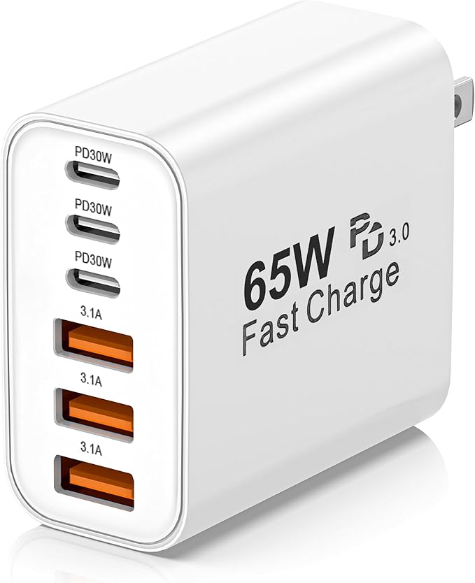 - The USB C Charger supports the Power Delivery and Quick Charge 3.0 fast charging functions with a total power of up to 65W.The USB-A port offers an output power of 3.1A/5 V,while the USB-C port offers a charging speed of 30W. Charge your iPhone devices from 0% to 65% in just 30 minutes.